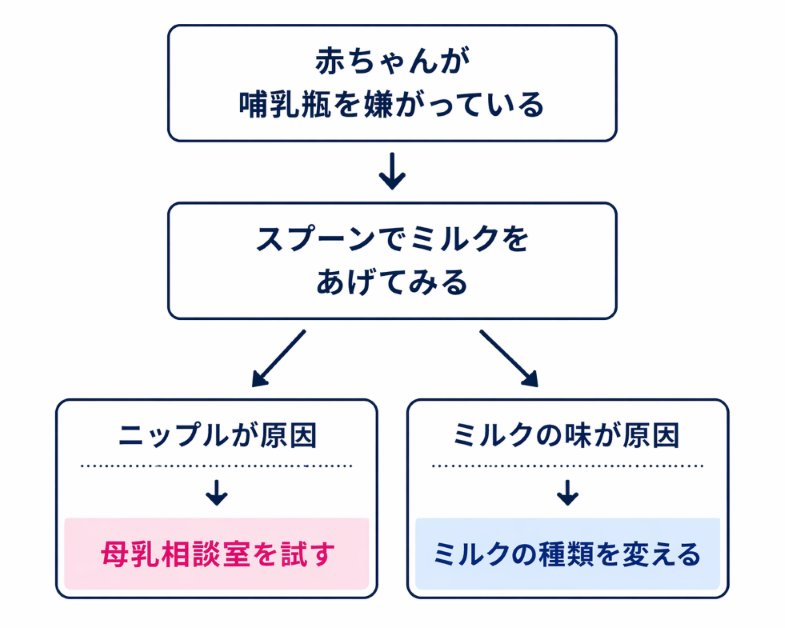 哺乳瓶拒否の原因、まず「ミルク」か「ニップル」かを見極める