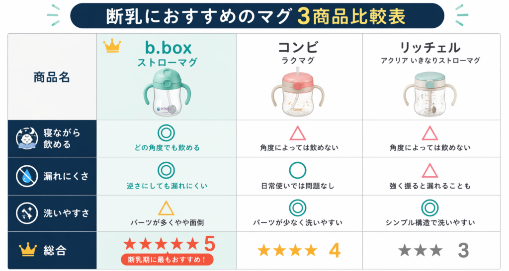 結論:断乳中のマグは「寝ながら飲める+漏れない」が最優先